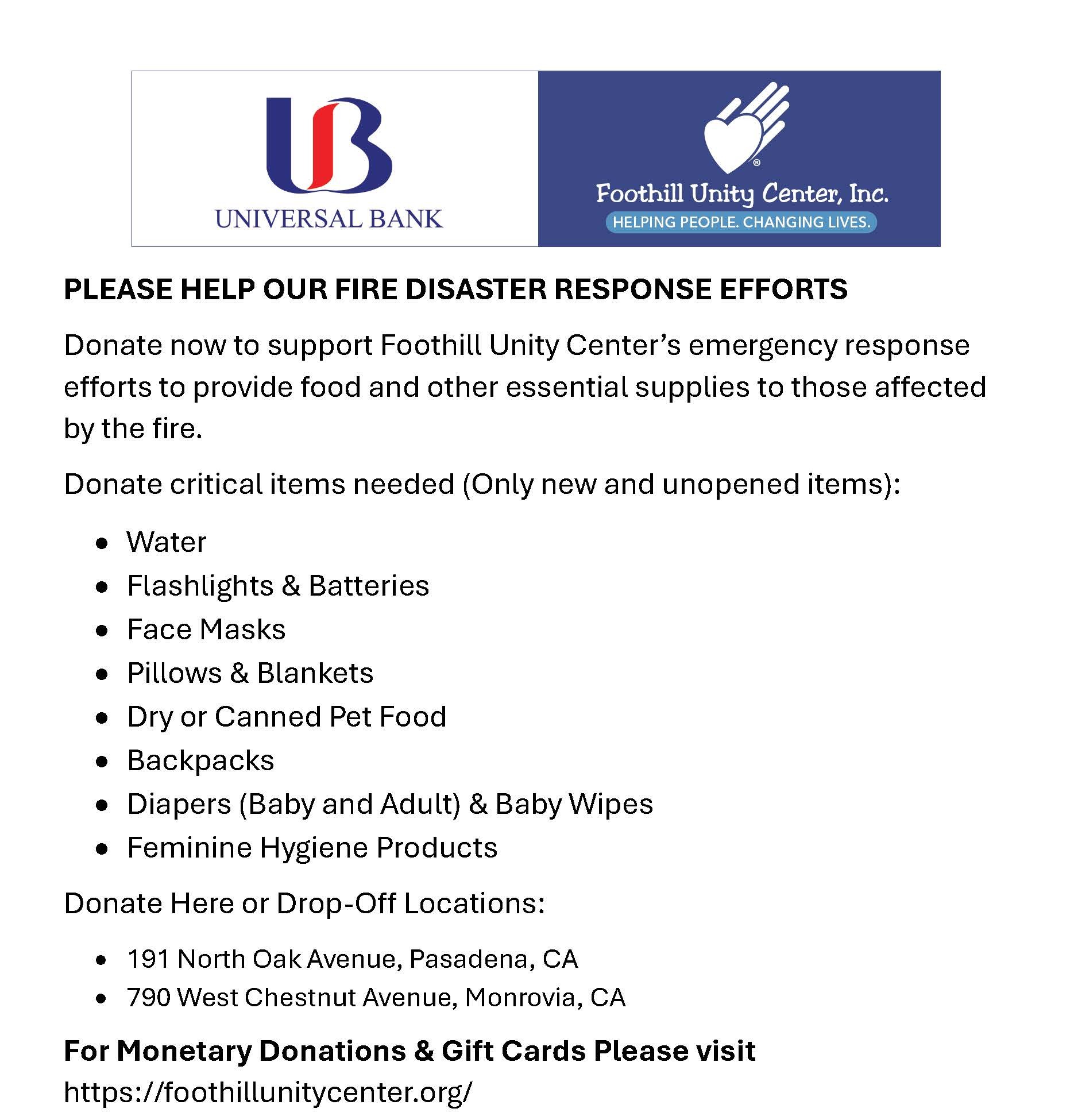 (*) Please email volunteer@foothillunitycenter.org for more information, to register for date/times or to register a group.